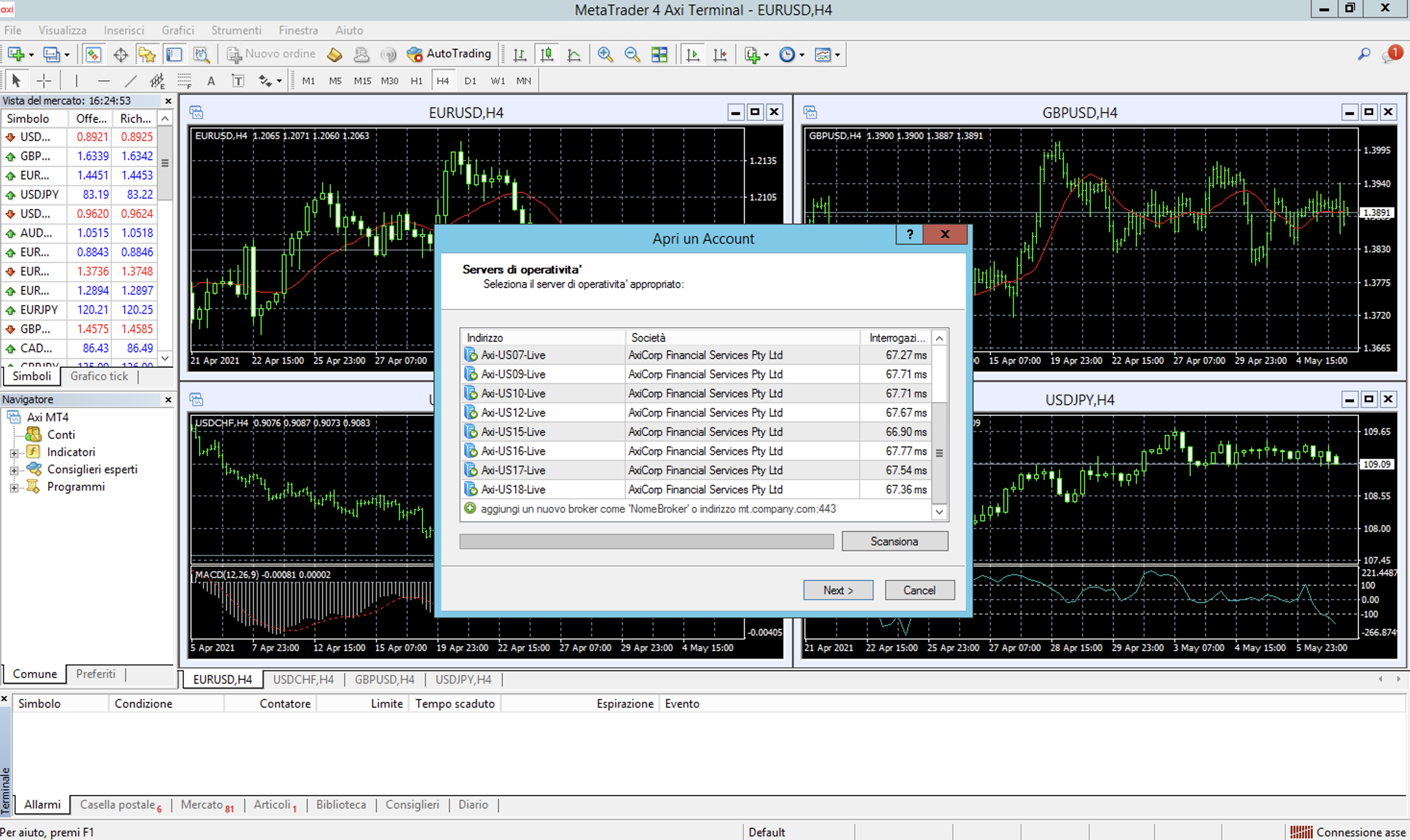 Clicca su "Scansiona" e il tuo Server del Broker verrà trovato (il server lo troverai nella mail che il broker/prop ti invia con le credenziali del tuo conto di trading)