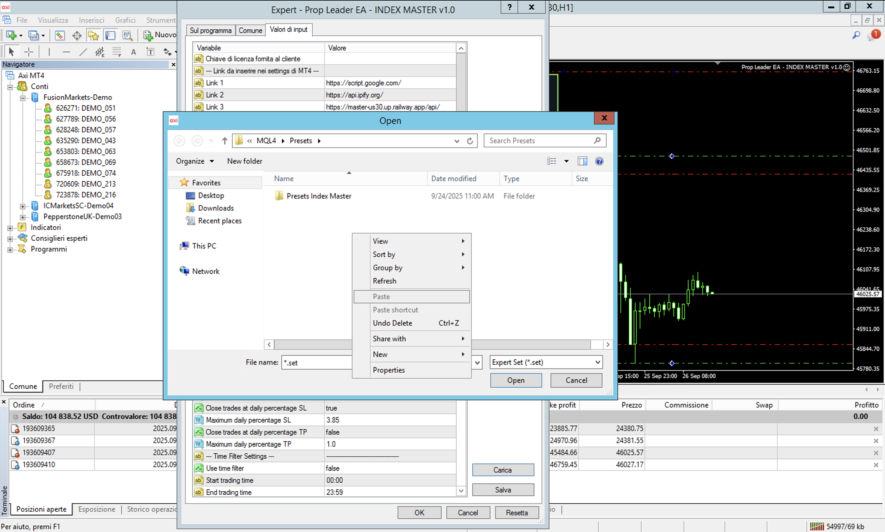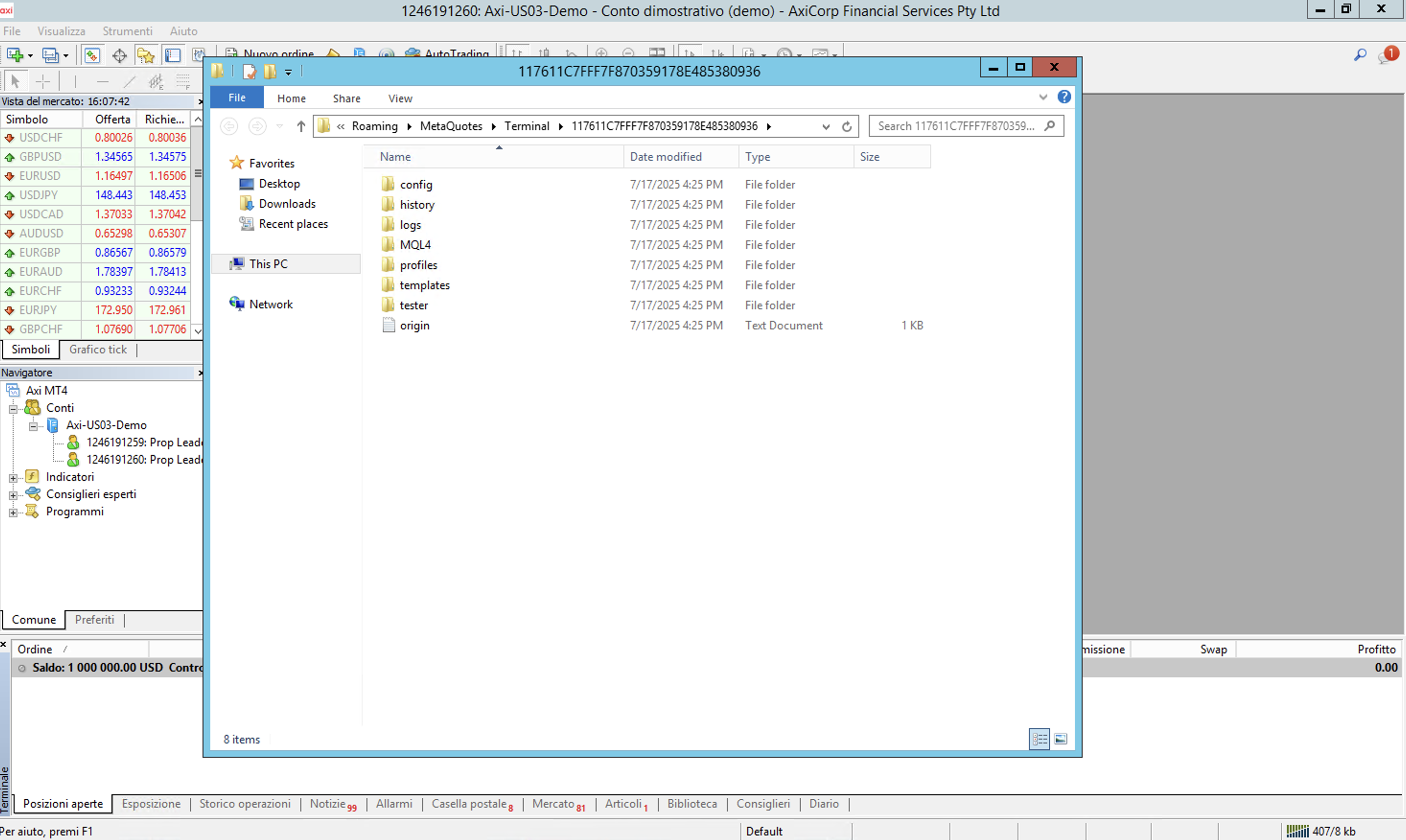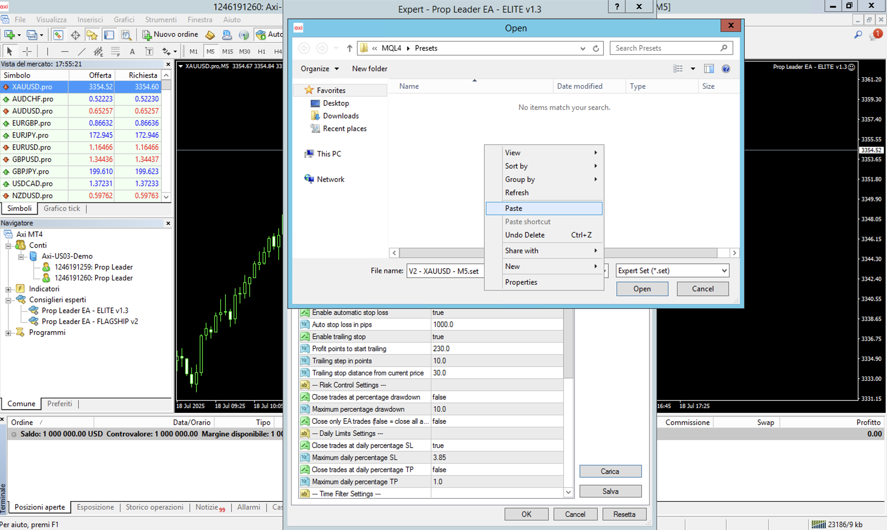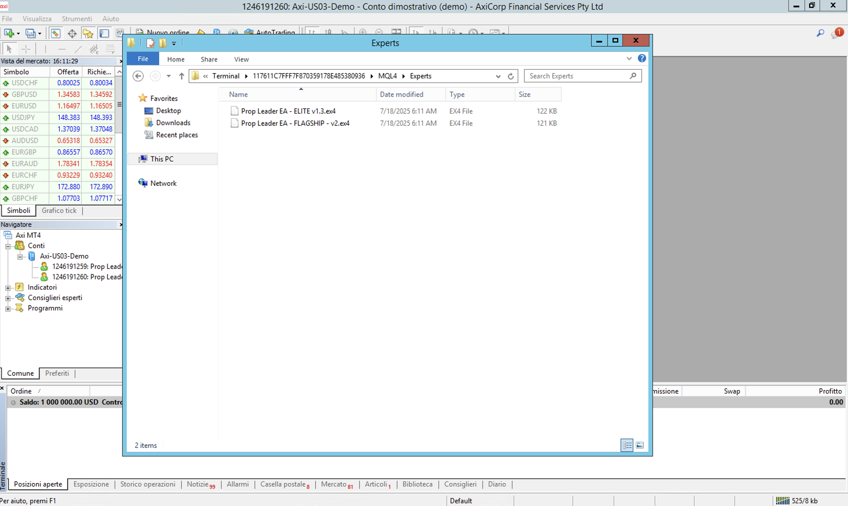 Incolla nella cartella Experts l'EA (.ex4) scaricato in precedenza - non modificare il nome del file