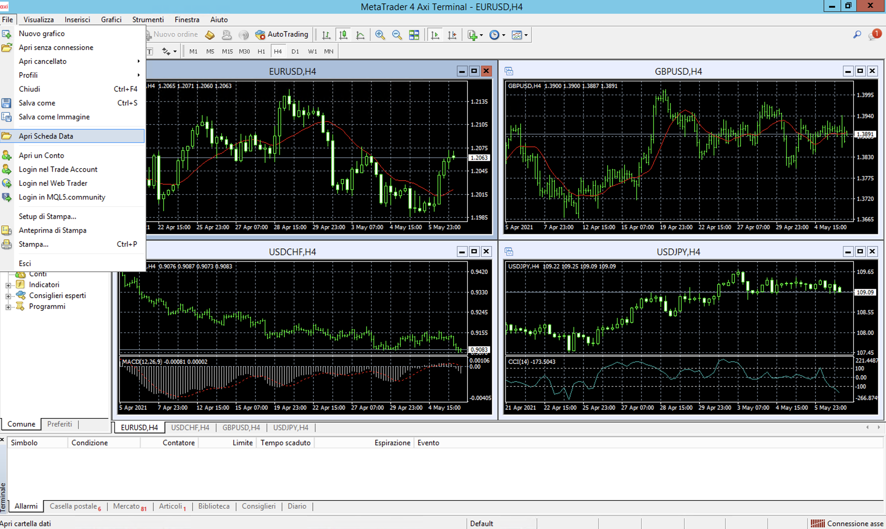 Cerca i simboli corretti dei tuoi pair Forex (in questa versione lite solo EURUSD)