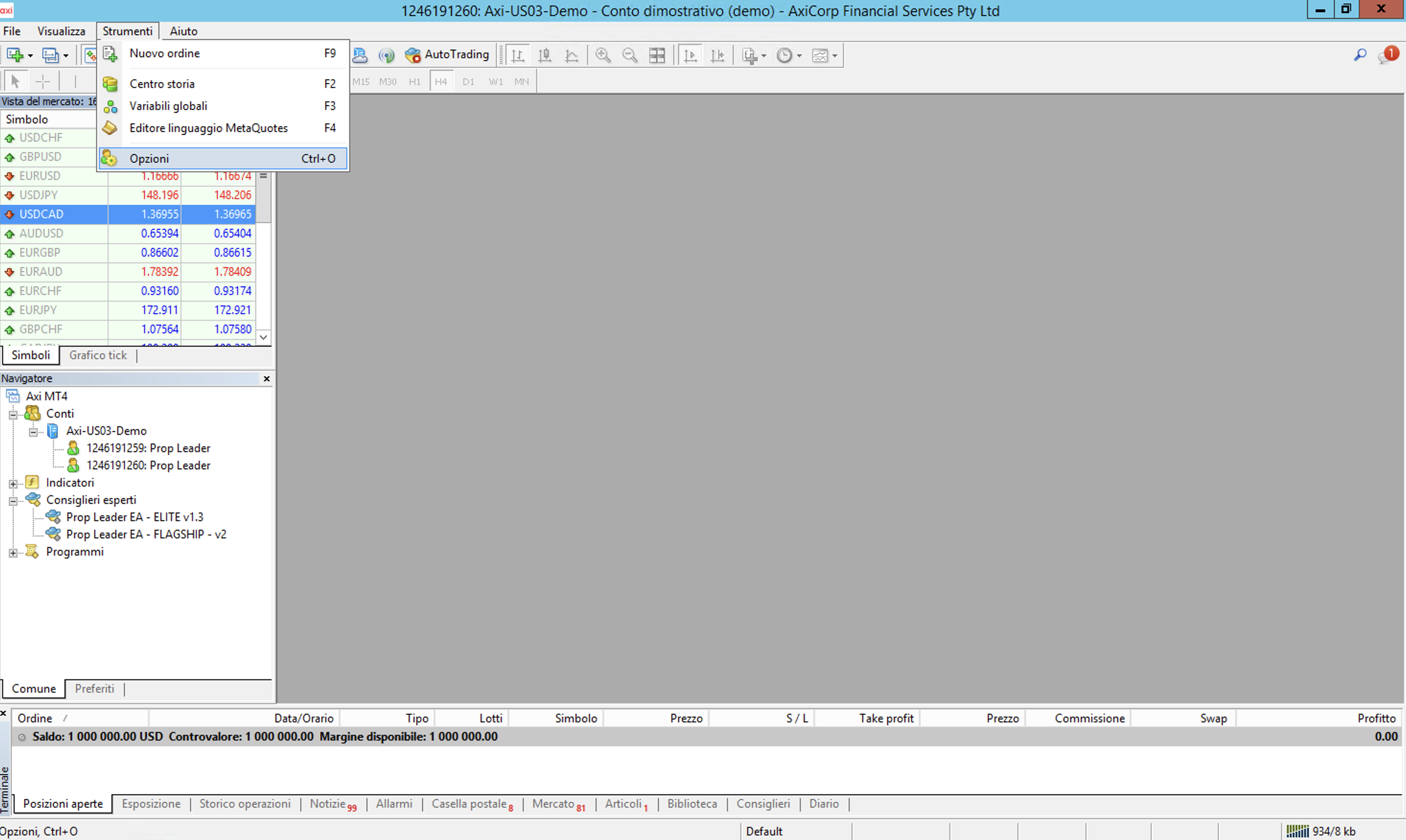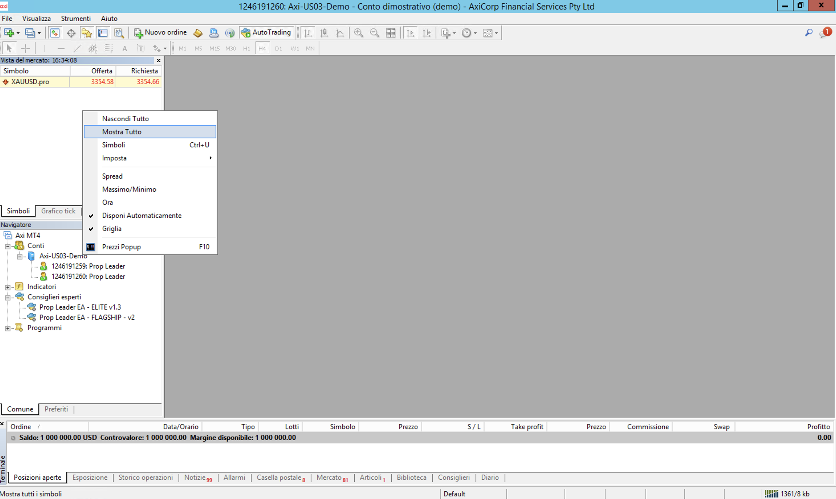 Click destro in un punto vuoto della Market Watch (la finestra con i simboli a sinistra)