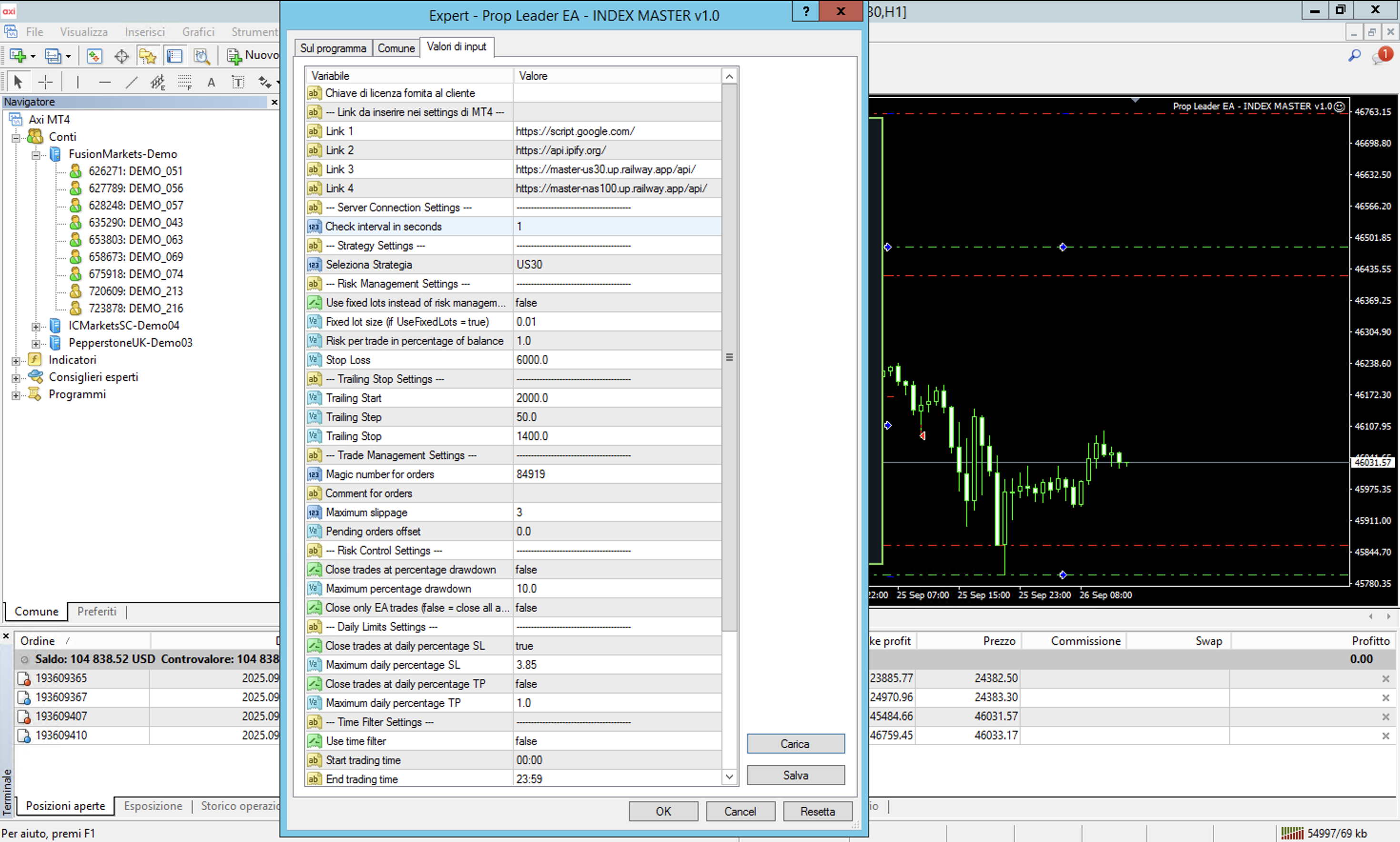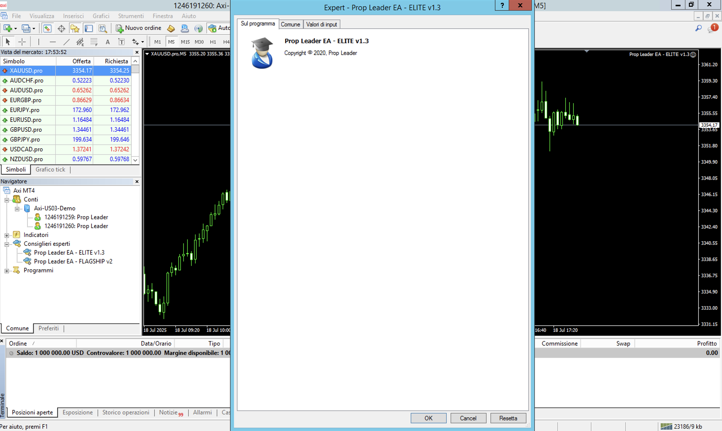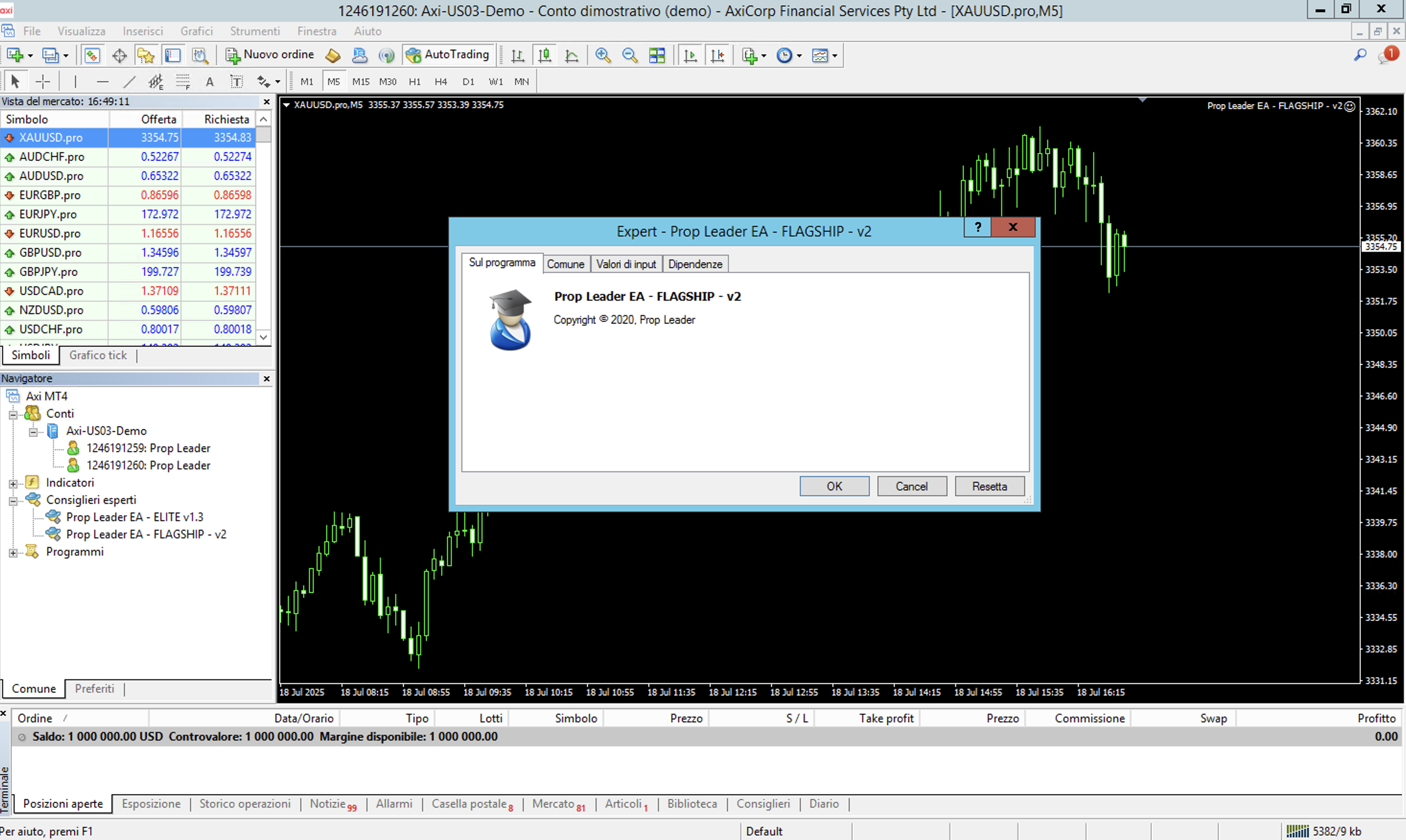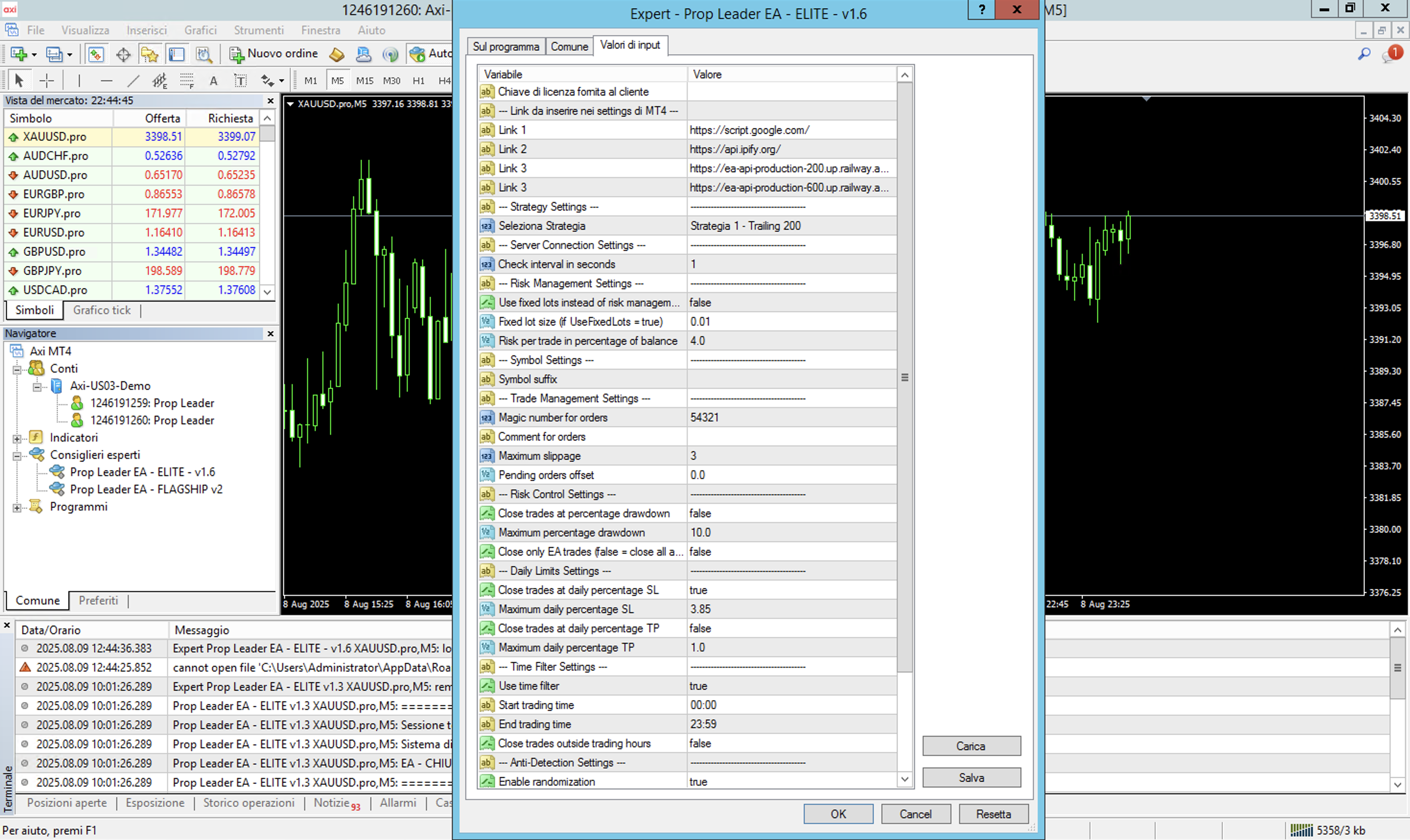 Se non si ha la possibilità di usare conti di questo tipo perchè ad esempio si opera su Prop Firm, consigliamo di eseguire il BOT su un conto demo di un broker con basso spread e poi copiare i trades sul conto Prop Firm.